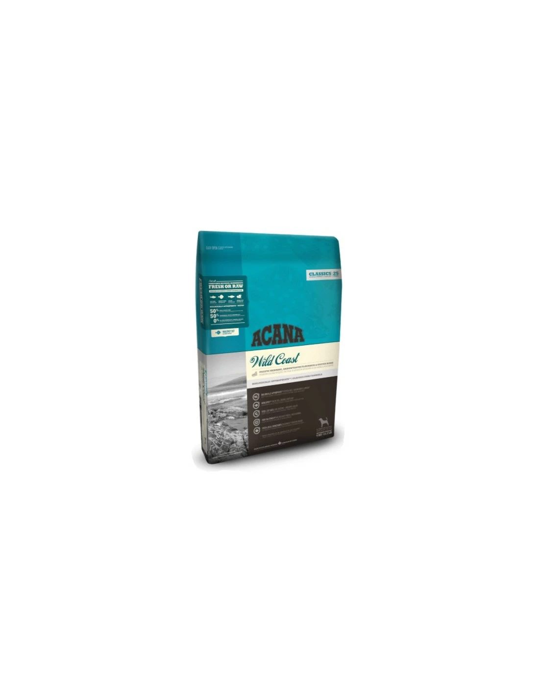 ACANA Wild Coast contiene 3 tipi di pesce fresco nelle proporzioni della preda intera (WholePrey) che comprende pesce, organi e cartilagine per apportare tutti i nutrienti necessari in modo naturale e completo, limitando i supplementi a vitamina B5, vitamina E, colina, zinco e rame.
