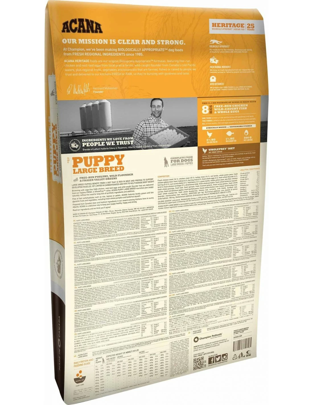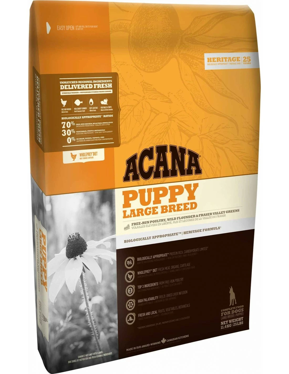 ACANA Puppy Large Breed contiene un’impareggiabile varietà di ingredienti locali allevati o pescati da persone che conosciamo e di cui ci fidiamo. Inoltre, sono dichiarati “idonei al consumo umano” e consegnati freschi alle nostre pluripremiate cucine NorthStar, ogni giorno!