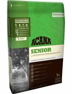 Acana Senior è l’alimento ideale per cani anziani di tutte le razze a partire da 7 anni di età: l’alimentazione migliore per i cani anziani consiste in una dieta ricca di proteine animali ma con un basso contenuto di carboidrati, che possono causare obesità e diabete.