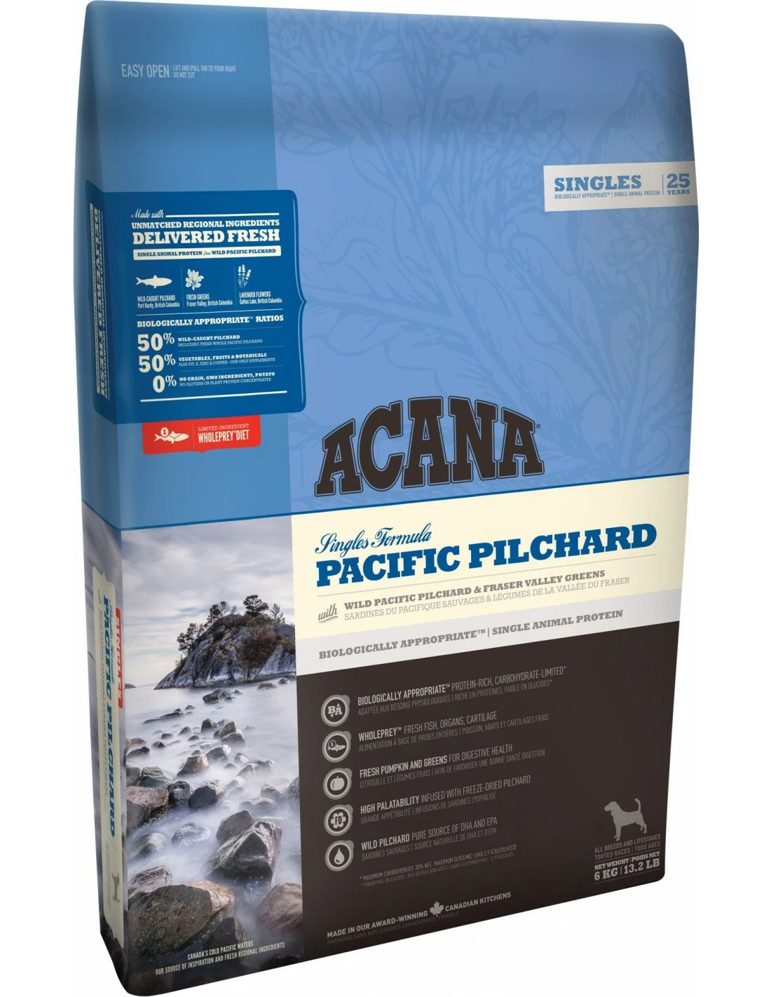 QUANTE VARIETÀ DI PESCE? ACANA Pacific Pilchard contiene unicamente la fonte proteica della sardina presente nelle proporzioni della preda intera (WholePrey) che comprendono pesce, organi e cartilagine. A differenza dei comuni alimenti per cani, le ricche e fresche inclusioni animali a preda intera (WholePrey) di ACANA forniscono i nutrienti essenziali naturalmente, riducendo la necessità di integrare lunghe liste di additivi sintetici.
