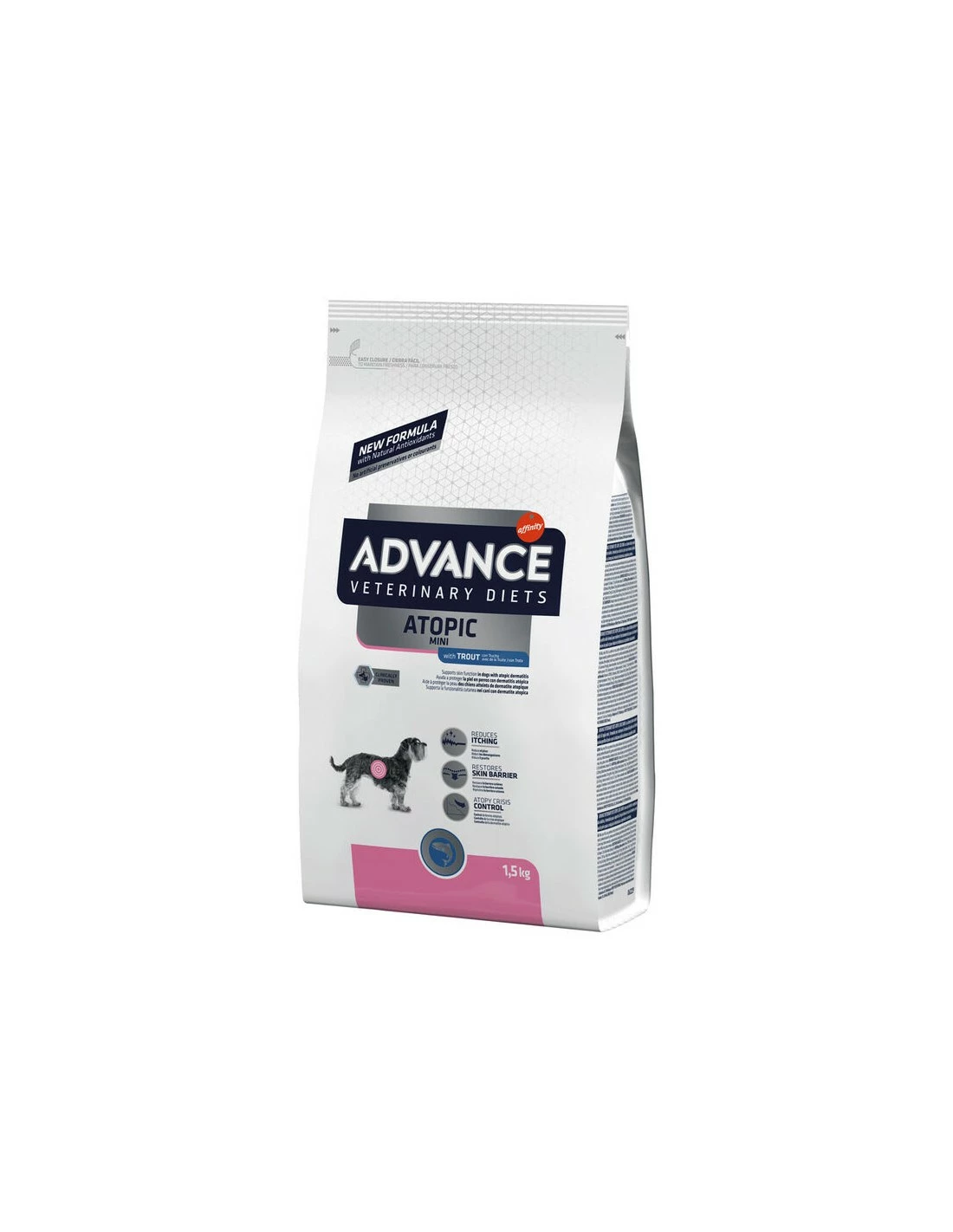 Ingredienti: Mais, trota 18%, riso, proteine di mais, proteine disidratate di trota 8%, grassi animali (stabilizzati con una miscela di tocoferoli di origine naturale), proteine delle patate 4%, proteine animali idrolizzate, polpa di barbabietola, collagene idrolizzato 2,6%, lievito, olio di pesce, fibra vegetale, olio di soia, fosfato monocalcico, carbonato di calcio, cloruro di potassio, sale, estratto di foglie di olivo 0,05%, aloe vera 50 mg/kg. Fonti di proteine: mais, trota, patata, lievito.