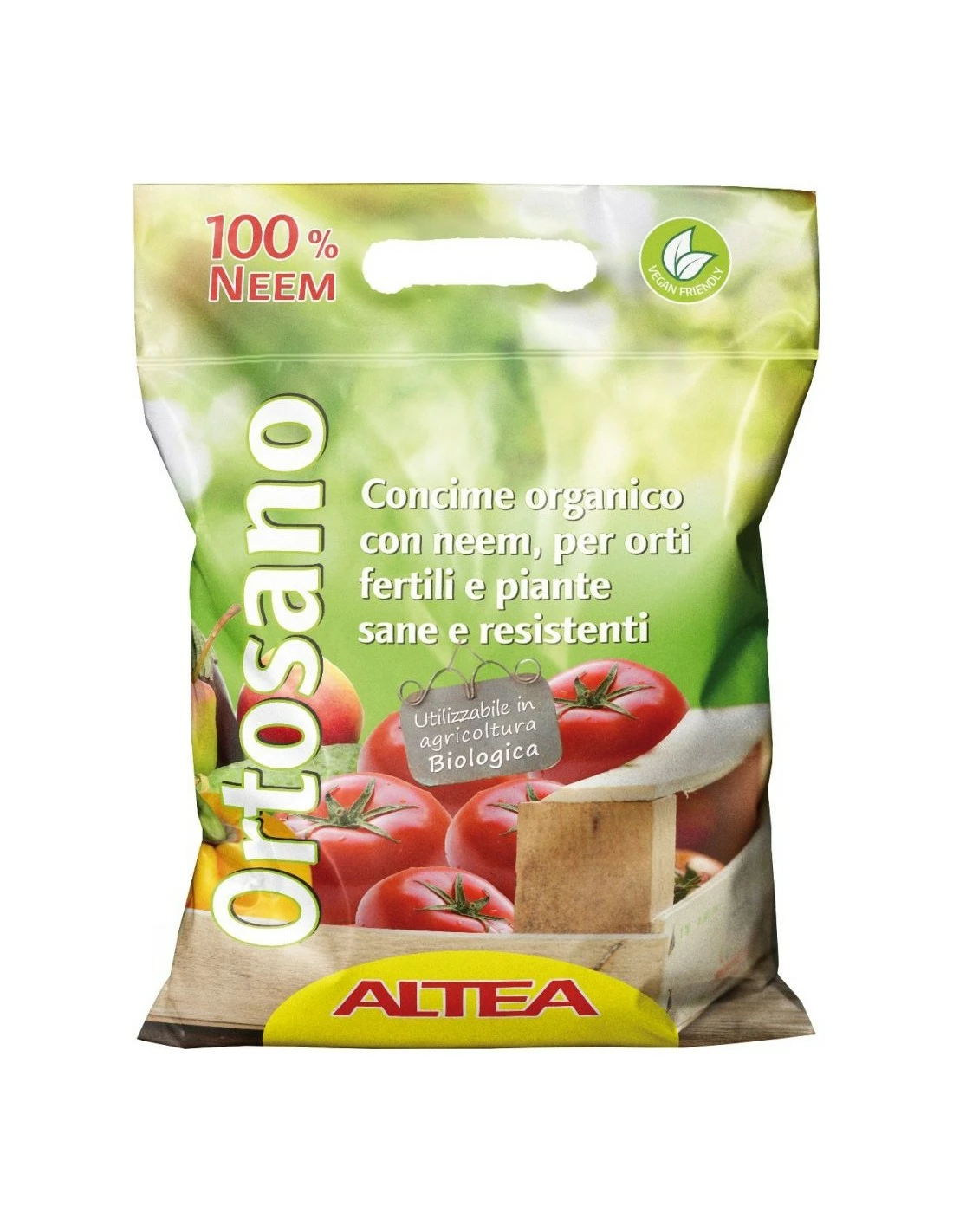ORTOSANO è un semplice ma innovativo concime, di origine interamente vegetale (derivato dall’albero di Neem) che racchiude in se molte proprietà .