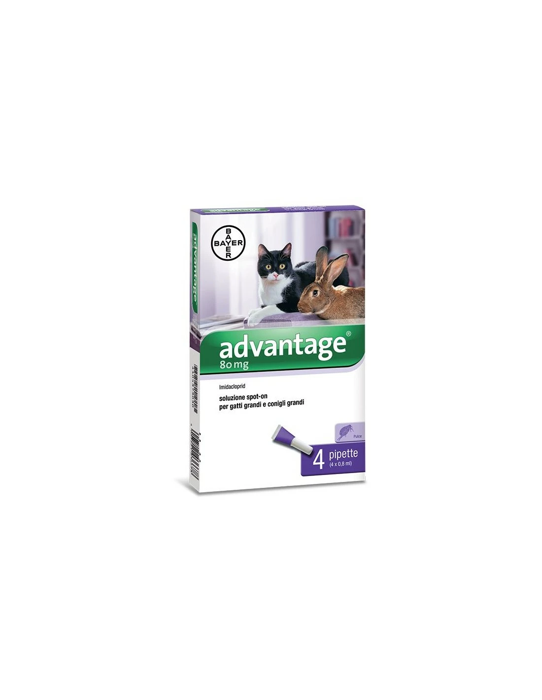 Per la prevenzione e trattamento delle pulci nei gatti di peso corporeo pari o superiore ai 4 kg. Trattamento delle pulci nei conigli di peso corporeo pari o superiore ai 4 kg. Un trattamento previene l’ulteriore infestazione da pulci per 3-4 settimane nei gatti e fino ad una settimana nei conigli. Nei gatti, il prodotto può essere utilizzato come parte di una strategia di trattamento per il controllo della Dermatite Allergica da Pulci (DAP), laddove questa sia stata precedentemente diagnosticata da un medico vetrinario.