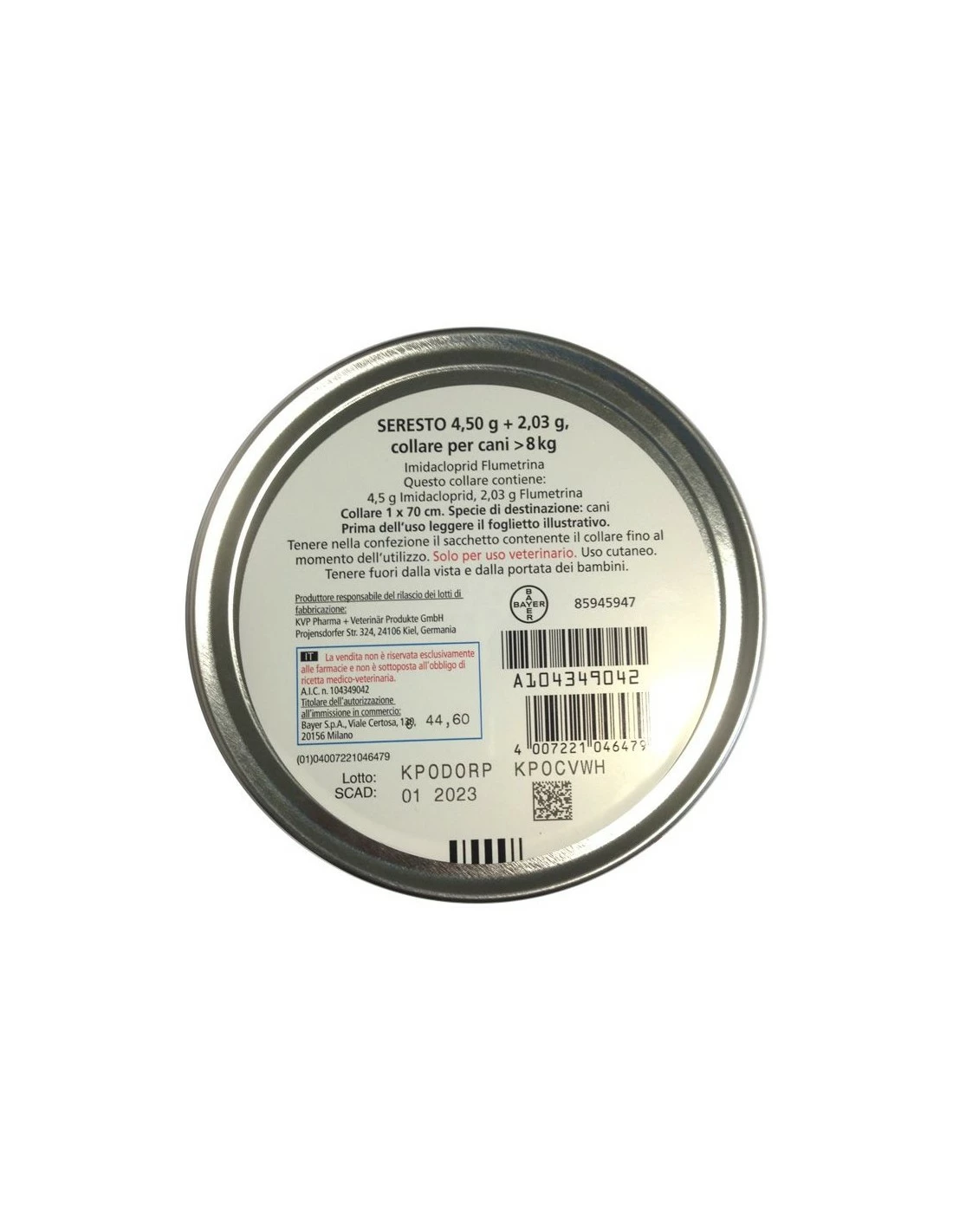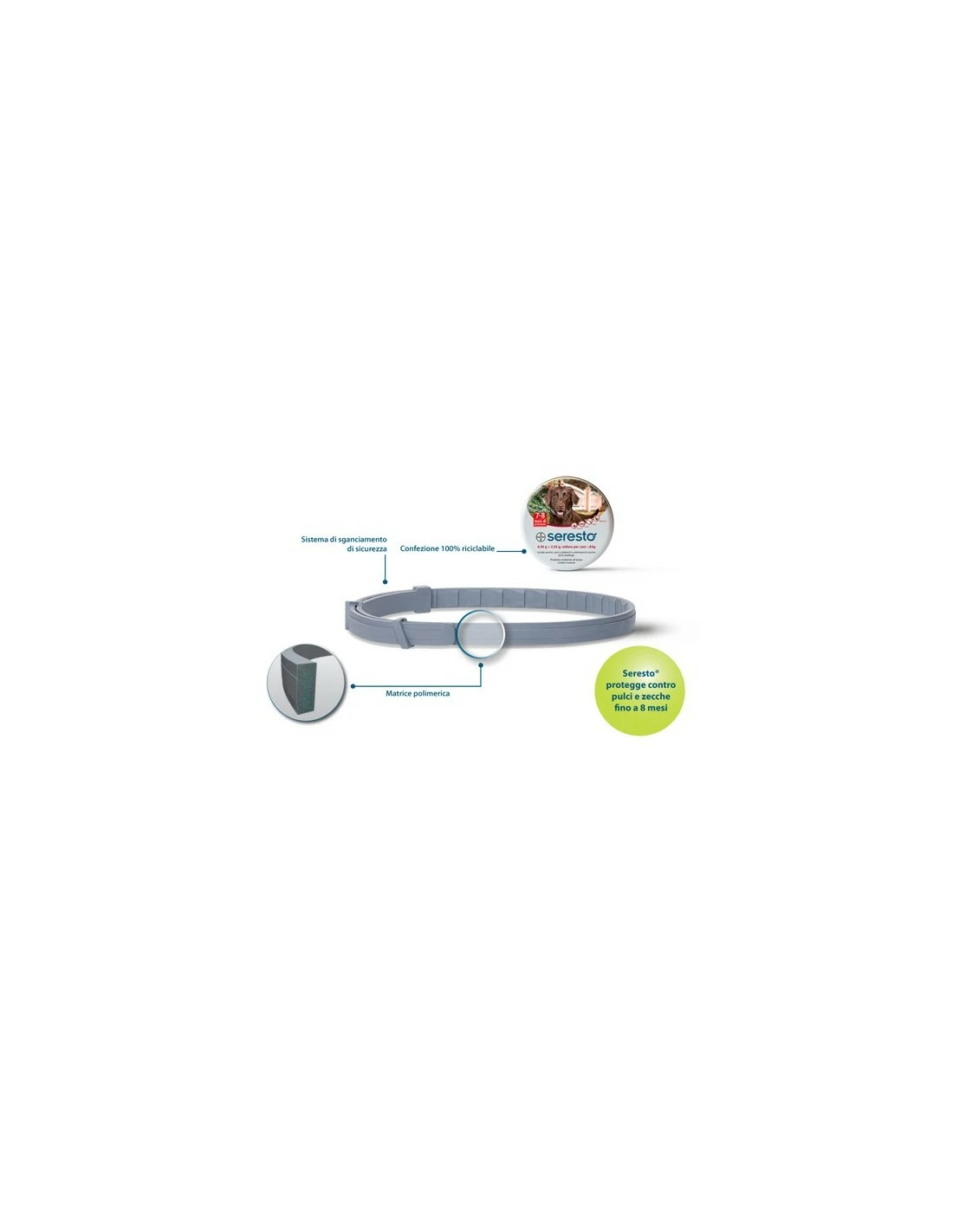Inoltre: La confezione protegge i principi attivi fino al momento in cui si utilizza Seresto® .Contiene un prospetto informativo con tutte le informazioni che necessiti e la confezione metallica e’ reciclabile al 100%.