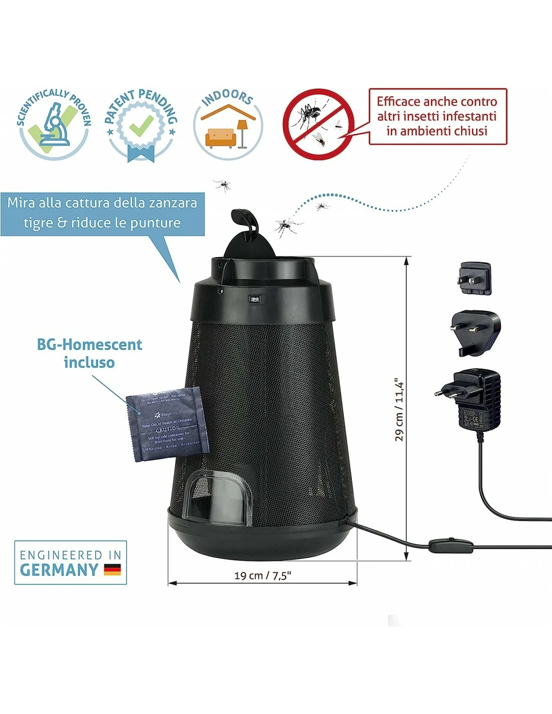 La trappola per zanzare “BG-Home” della Biogents è una trappola ad alte prestazioni, ecologica e per ambienti interni, non tossica, senza insetticidi. Si può utilizzare anche per terrazze e balconi aperti. I risultati migliori si ottengono associando l’utilizzo di BG-HOME alle trappole Biogents per uso all’aperto.
