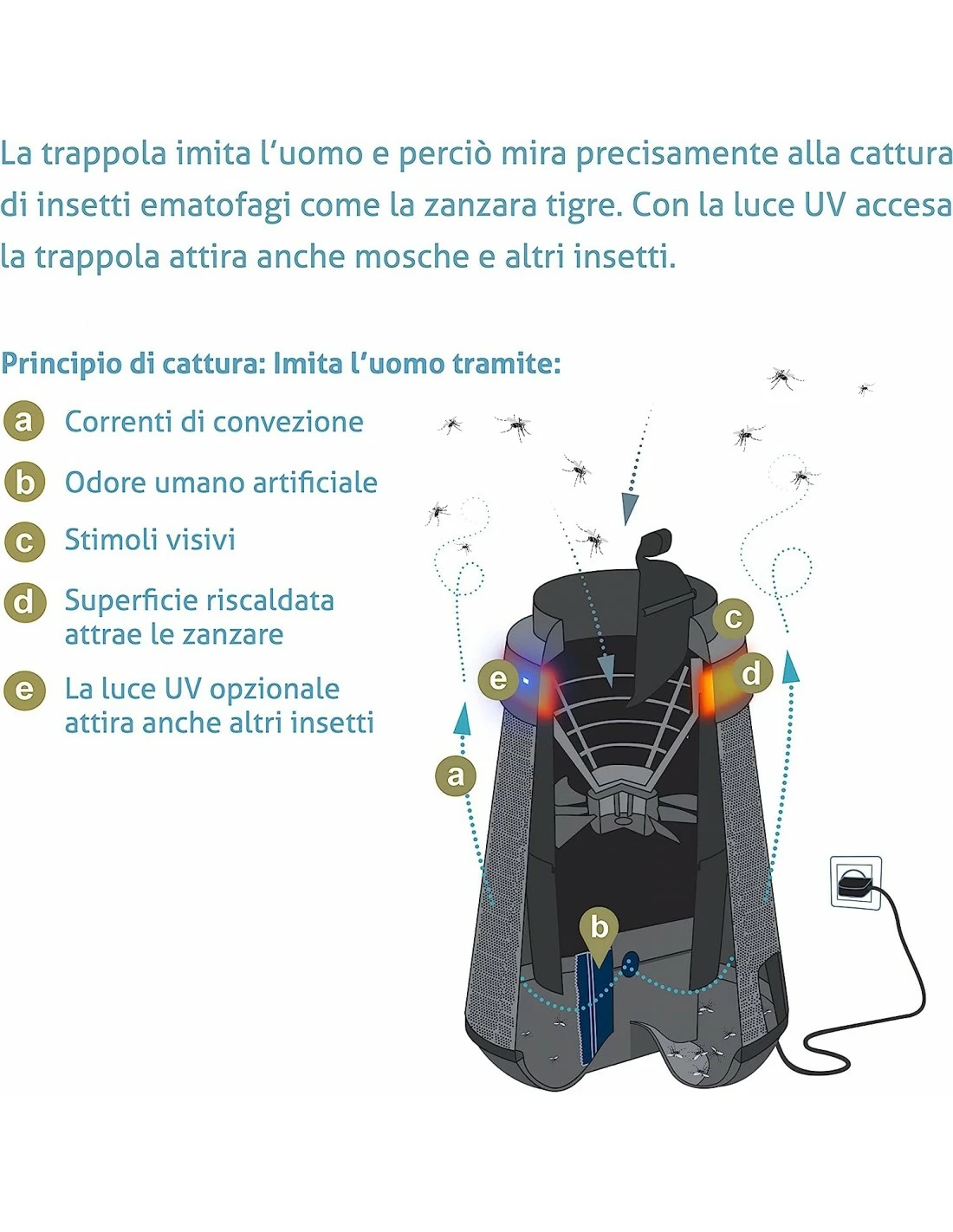 La trappola attrae specialmente la zanzara tigre asiatica (Aedes albopictus) e la zanzara della febbre gialla (Aedes aegypti). Entrambe le specie non solo sono fastidiose ma possono anche trasmettere malattie come la dengue, la chikungunya o la Zika.