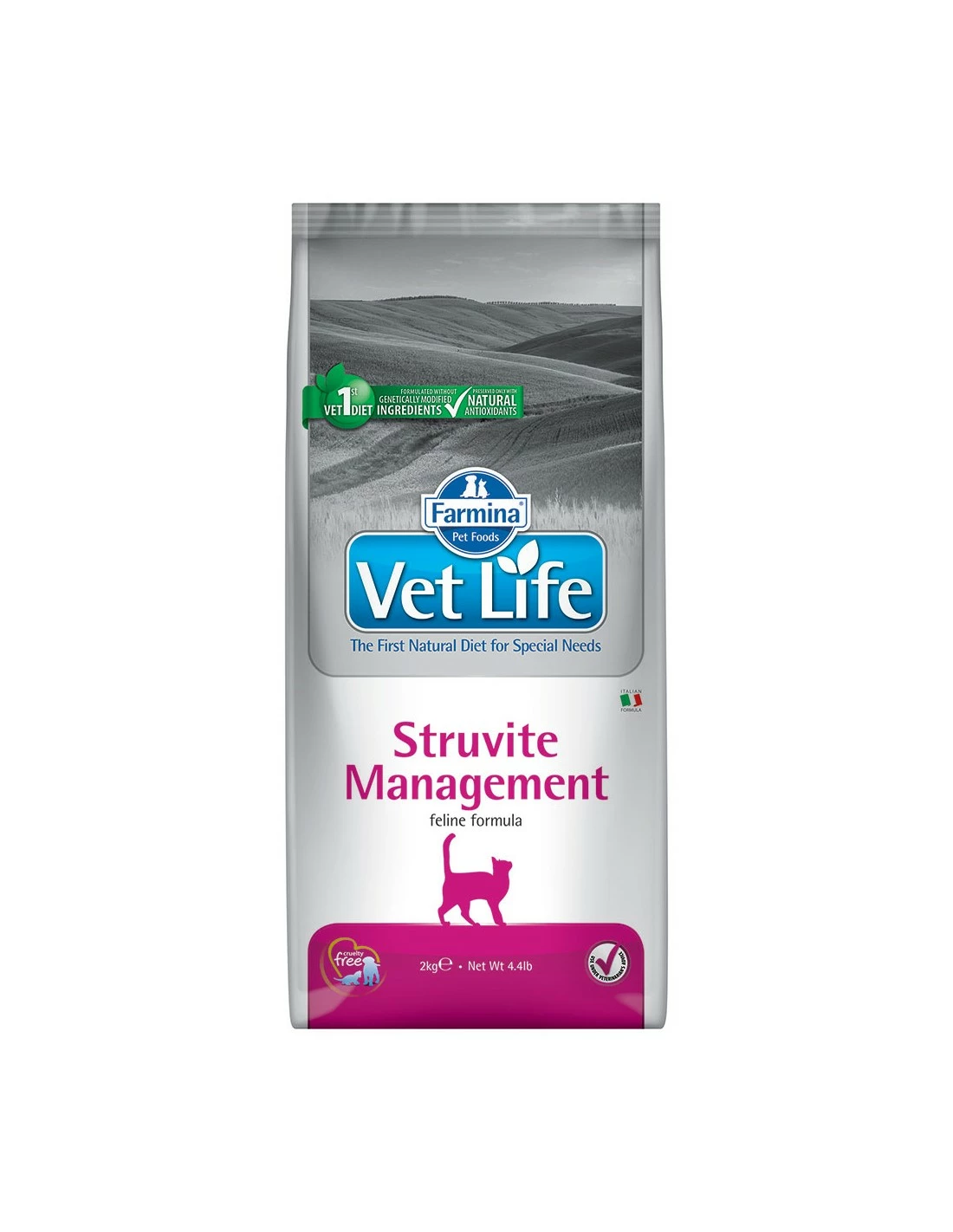 E’ un alimento dietetico completo, per gatti, per la riduzione delle recidive di calcoli di struvite e la malattia dell’apparato urinario inferiore dei felini.