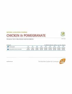 Pollo fresco disossato (24%), carne di pollo disidratata (22%), amido di pisello (20%), grasso di pollo, zucca disidratata (5%), uova intere disidratate, aringhe fresche, aringhe disidratate, olio di pesce, fibra vegetale di pisello, carote essiccate, farina d’erba medica disidratata, inulina, fruttoligosaccaridi, mannanoligosaccaridi, melagrana in polvere (0.5%), mela disidratata, spinaci in polvere,psyllium (0.3%), ribes in polvere, arancia dolce disidratata, mirtilli in polvere, cloruro di sodio, lievito di birra essiccato, radice di curcuma (0.2%), glucosamina, condroitinsolfato, estratto di fiore di Tagete (fonte di luteina).