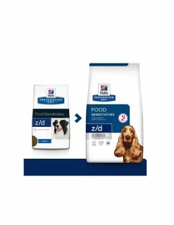 Hill’s Prescription Diet z/d Food Sensitivities è un alimento secco dietetico formulato per supportare a livello nutrizionale i cani adulti che presentano sintomi cutanei e digestivi causati da allergie alimentari.