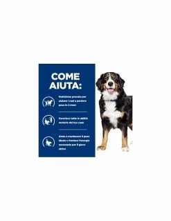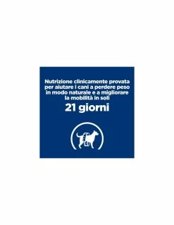 Alimento dietetico completo per la riduzione del peso corporeo in eccesso, e per il supporto del metabolismo articolare in caso di osteoartrite nei cani adulti.