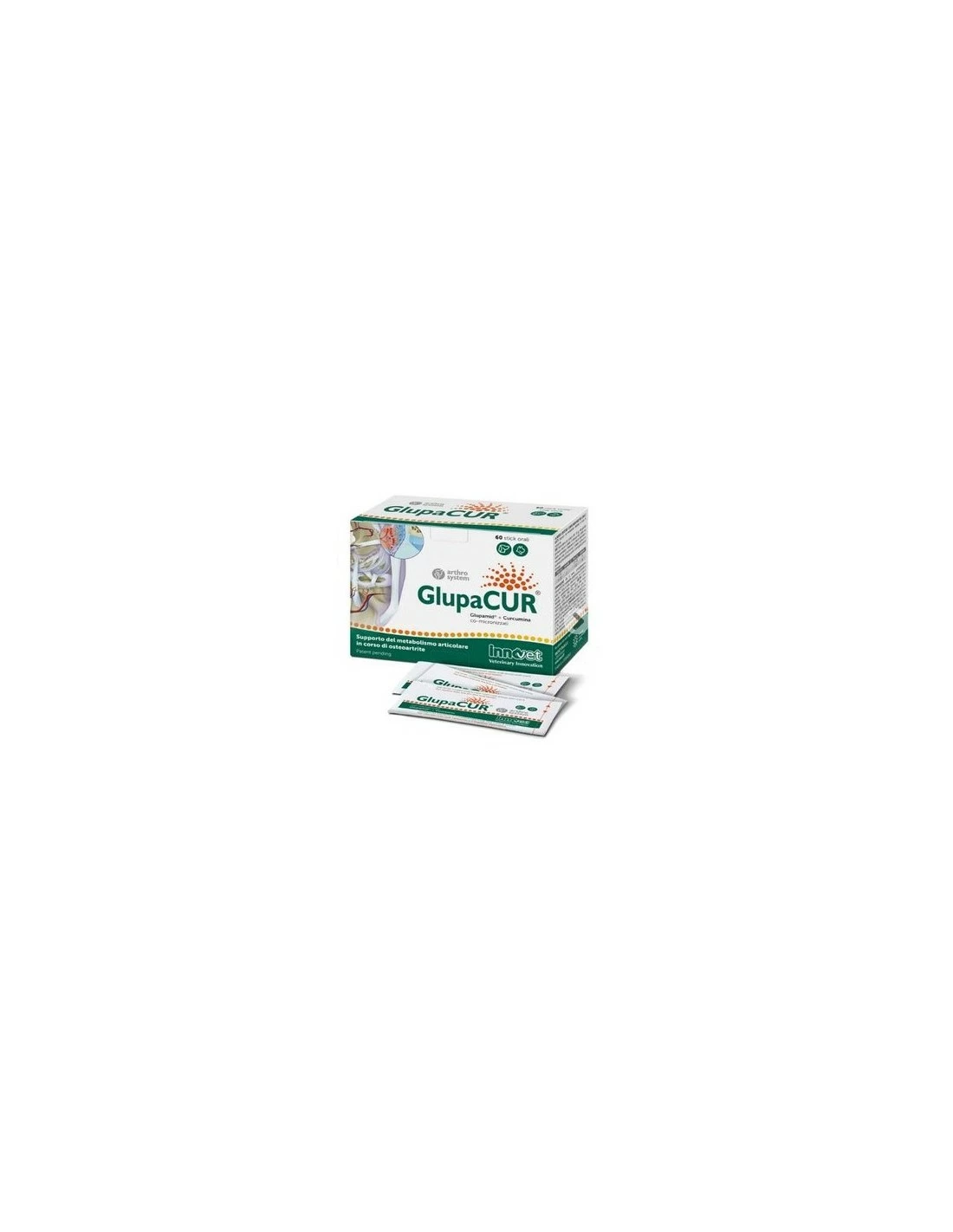 Glupacur è un mangime complementare per cani e gatti: grazie al suo esclusivo composito micronizzato costituito da palmitoilglucosamina ed estratto di Curcuma, le compresse di Glupacur® esercitano un effetto benefico sul metabolismo articolare di cani e gatti affetti da osteoartrite, migliorando la loro qualità di vita. La Palmitoilglucosamina è fonte di glucosamina a lento rilascio e agisce normalizzando la reattività dei mastociti sinoviali (effetto ALIA). Questa azione è agevolata dagli acidi grassi essenziali omega-3, mentre la vitamina E e la curcumina proteggono l’ambiente articolare dallo stress ossidativo.