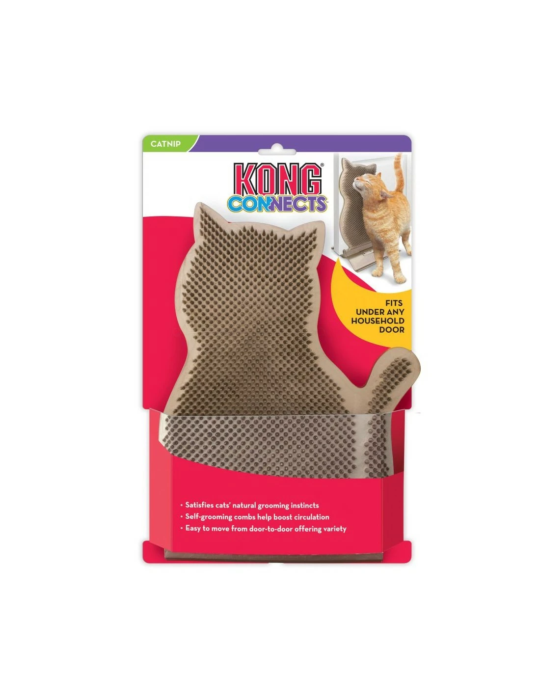 Mentre il tuo gatto si strofina avanti e indietro, il Connects Kitty Comber di KONG lo massaggia in modo eccezionale, soddisfacendo il suo istinto naturale di farsi la toeletta. Il Kitty Comber si presenta come un fermaporta autoportante con attacco a scatto, grazie al quale è facile spostarlo da una porta all’altra, per poter offrire esperienze diverse.