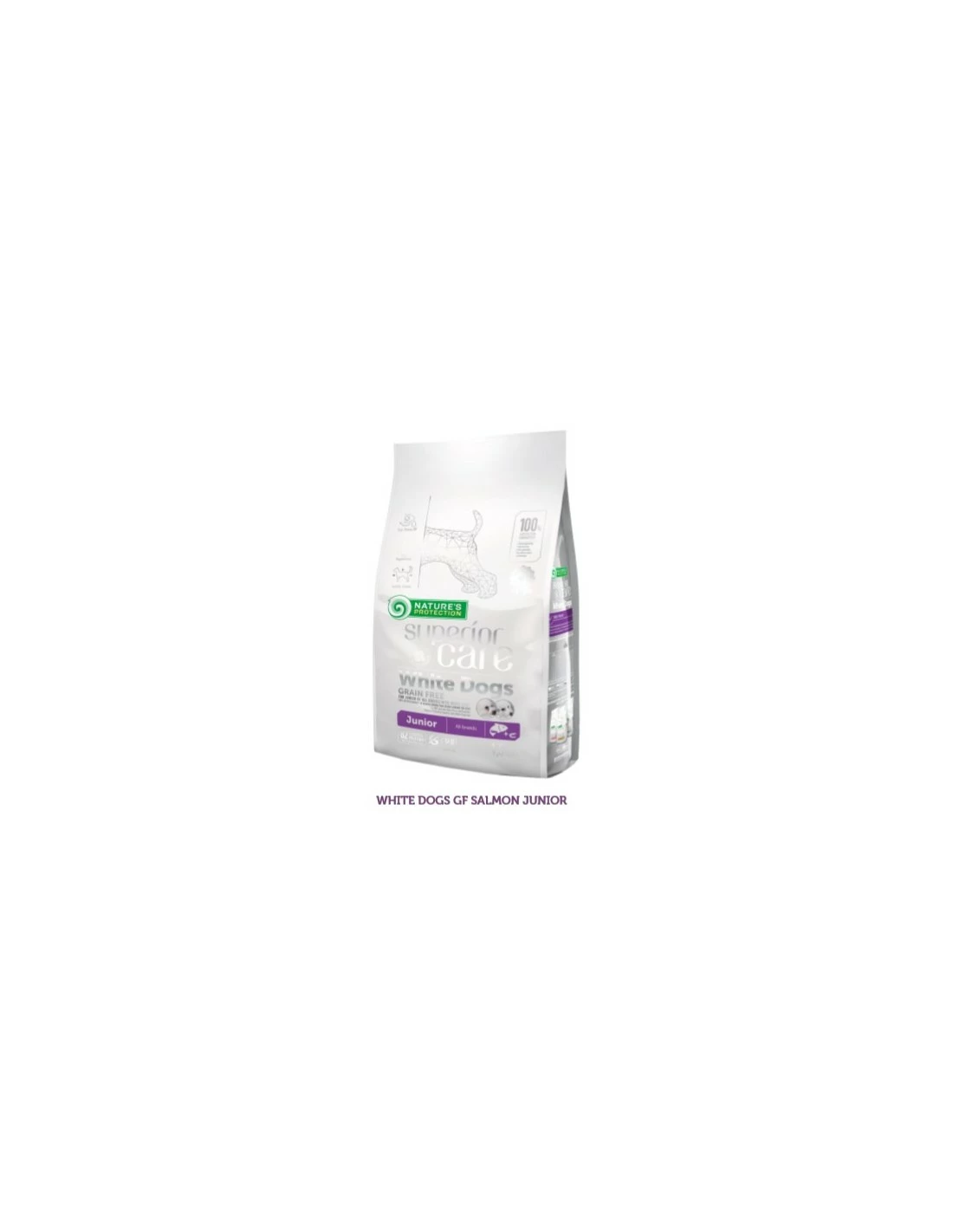 Nature’s Protection Superior Coat WHITE COAT è il Primo Alimento Completo Super Premium per Cuccioli di tutte le razze, studiato appositamente per la bellezza del MANTO BIANCO. Grazie alla sua speciale formulazione GRAIN FREE aiuta ad evitare disordini del sistema digestivo ed allergie; inoltre garantisce il 100%* di efficacia nella rimozione delle macchie da contorno occhi, muso e zampe.