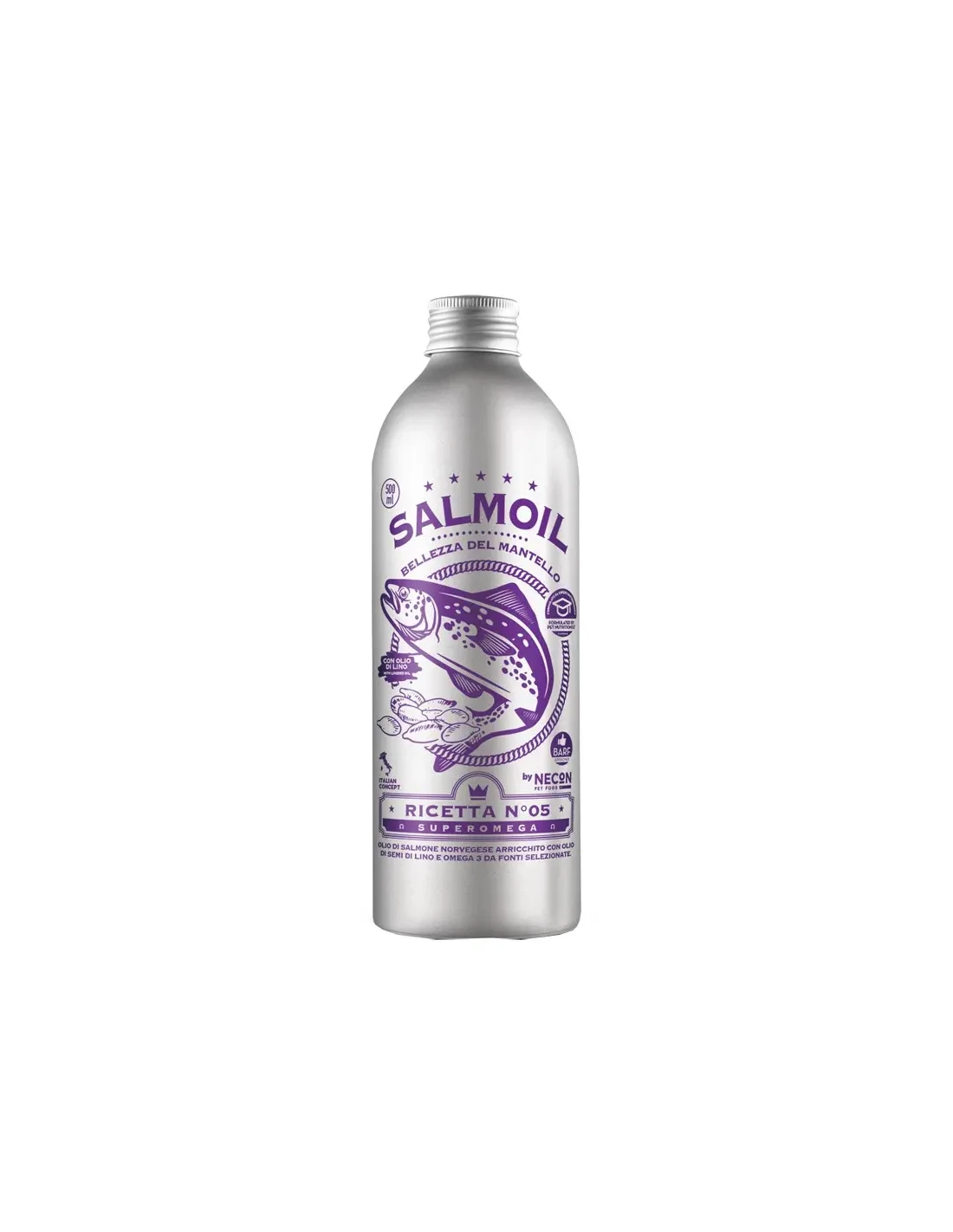 La sinergia delle proprietà benefiche delle varie fonti di omega-3 presenti in Salmoil Ricetta 5 (purissimo olio di salmone norvegese, krill, olio di lino e alga Schizochytrium) permette di mantenere cute e pelo in salute.