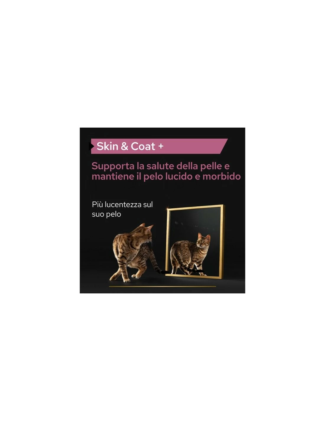 Pro Plan Cat Supplement Skin & Coat può essere aggiunto alla razione giornaliera di alimento completo, direttamente nella ciotola del tuo gatto.