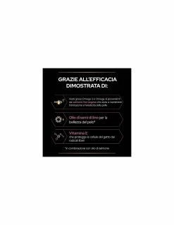 Componenti: olio di salmone (44%), olio di semi di lino (35%), olio di semi di girasole.