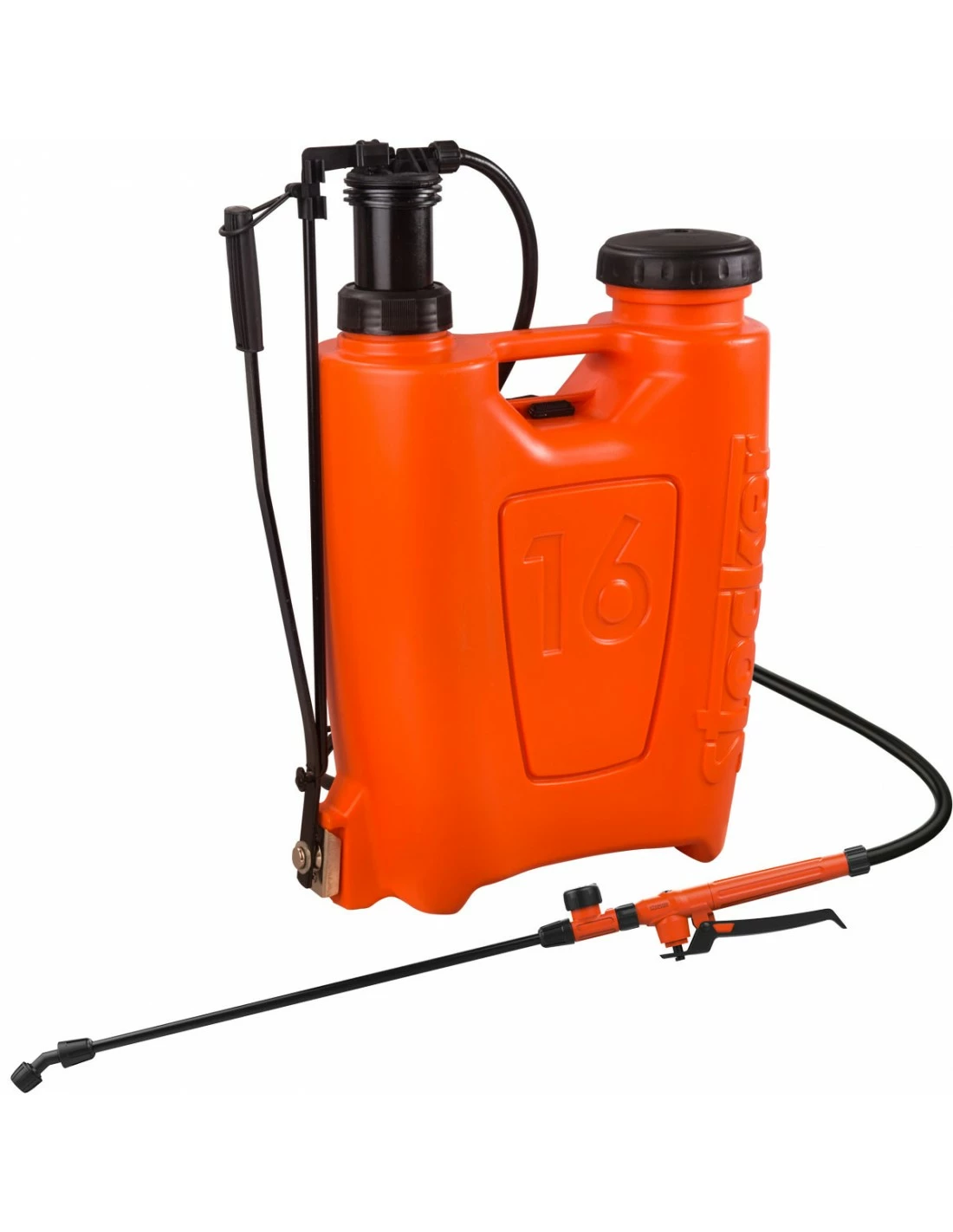 Pompa Zaino a pressione manuale con serbatoio da 16 litri; ideale per l’applicazione degli agenti liquidi di protezione delle piante e per fertilizzare.