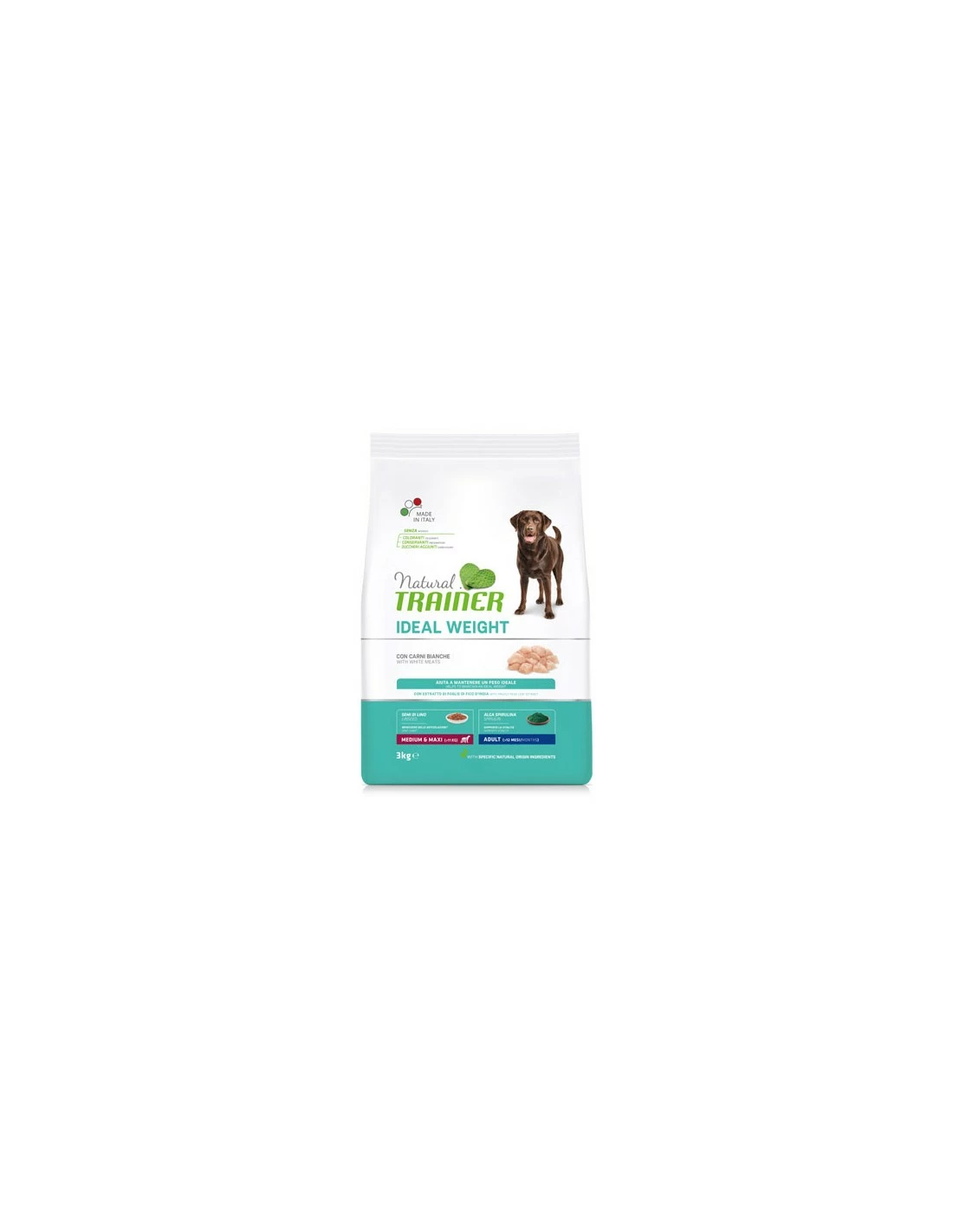 IDEAL WEIGHT: Grazie al 36% di grassi in meno**, alla L-carnitina e ad un basso contenuto calorico aiuta a mantenere un peso ideale. La sua formula adattata contiene fibre vegetali, minerali ed estratto di foglie di fico d’India, per aiutare a ridurre l’assorbimento dei grassi. **Rispetto a Trainer® Natural Adult Medium.
